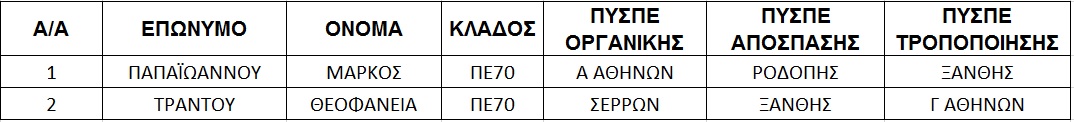 Ανακλήσεις αποσπάσεων μετά από τις συμπληρωματικές μεταθέσεις