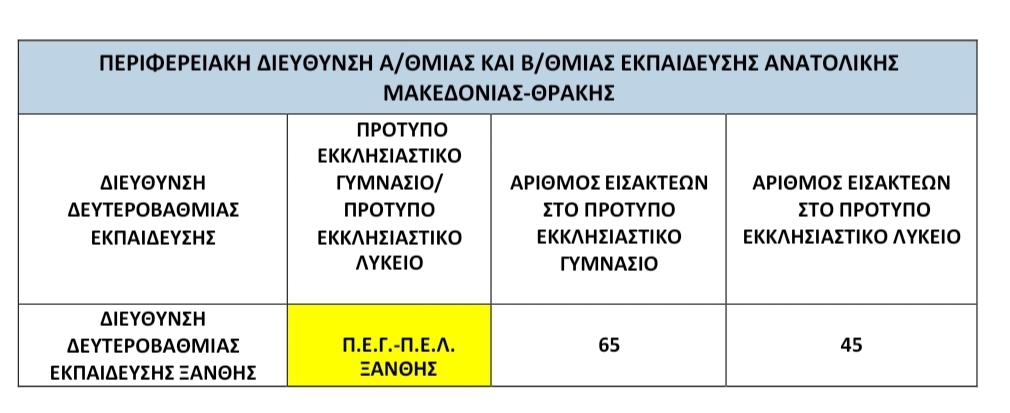 Ο αριθμός των εισακτέων στο εκκλησιαστικό Γυμνάσιο-Λύκειο Ξάνθης εμφανίζεται στον παρακάτω πίνακα.