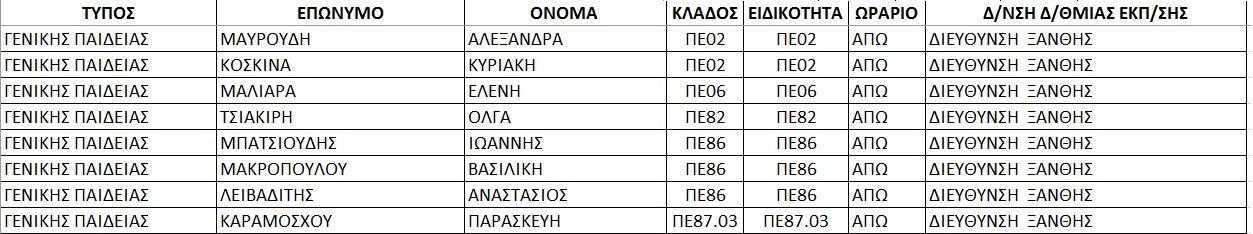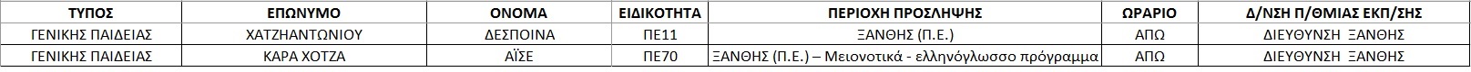 Οι προσλήψεις στην Ξάνθη εμφανίζονται στους παρακάτω πίνακες.